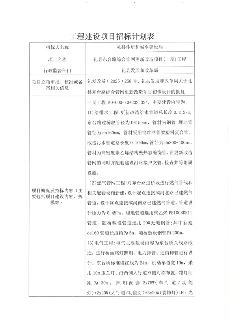 禮縣東臺(tái)路綜合管網(wǎng)更新改造項(xiàng)目(一期)工程