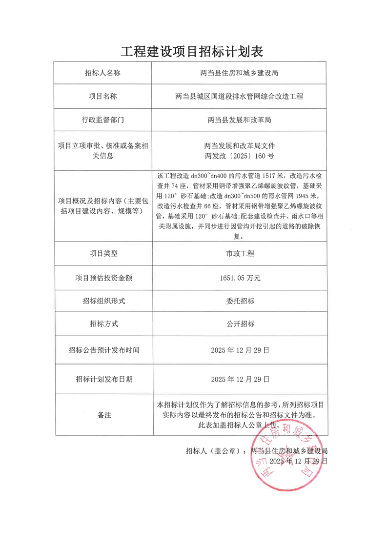 兩當(dāng)縣城區(qū)國(guó)道段排水管網(wǎng)綜合改造工程